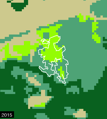 vis_params={'min': 0, 'max': 3000, 'palette': ['green', 'yellow', 'brown']},